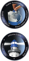 This superb 3D reproduction of a lighthouse consists of 216 numbered plastic puzzle pieces, as well as unique accessories to complete the building. The high-quality cutting of the pieces—flat, curved, or bendable—ensures perfect stability, all without the need for glue.
