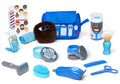 Cut, trim, shave, and style with pretend play shaving essentials for a trip to the barber! Style and pretend to trim a soft, wearable beard with adjustable straps. For a traditional shave, swirl squishy, textured shaving cream in a tub with a soft-bristled brush to pretend to lather up, then trim with play scissors. For a more modern shave, there’s a pump shaving cream can, trimmers that vibrate when the tab is pulled (no batteries required) and a rolling razor for a “smooth finish”. Kids can check their look in the hand mirror that flips to stand as they finish with textured pomade in a tub, comb, and brush. Includes a reusable double-sided activity card. Engaging, pretend-play fun allows both boys and girls three and older to play the barber or the customer! Everything stores in a sturdy zippered shaving kit for easy cleanup.