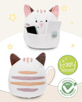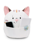 • CUDDLE SOFT BUDDY: The friendly white NICI cat with gentle stripes and brown ears will fascinate with its fluffy, round body, a charming little face and a belly pocket that offers a hiding place for all your treasures
