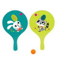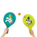 Pop n’ bounce back and forth with the Bounce & Pop Paddle Set from B. toys! This cute and colorful outdoor game comes with 2 animal-themed paddles and 1 bouncy ball. The paddles each have a friendly animal character and are easy for little hands to grip. Bring this outdoor game set to the park, play in the backyard, have a volley at the beach or on a picnic – perfect for summer vacation! Playing this paddle ball game keeps kids active, promotes healthy development, and improves hand-eye coordination. And because we at B. keep the environment in mind, parents will also be happy to know that our packaging is 100% recyclable. Recommended for kids 3 years and over.