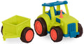 From spring to fall, the Happy Cruisers Tractor & Trailer does it all! Toddlers can get ready for the harvest season by rolling through the fields and collecting what they grew on their pretend farms. They can place lil’ goodies in the detachable trailer and haul 'em wherever their imagination takes them. This realistic vehicle is tiny hands-friendly and the big wheels roll smoothly, leaving floors scratch-free. Ride at home, drive outdoors, and play with peace of mind – this vehicle is made of worry-free and recyclable materials! (Where facilities exist.) Not to mention, this toy tractor is part of the Happy Cruisers collection that features a colorful range of fun trucks and vehicles. Collect 'em all!