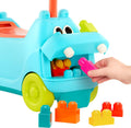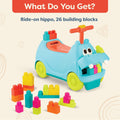• Ride-On Playset: Ride, build, and play all day with a hippo ride-on and 26 colorful building blocks!