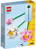 Recreate a wonder of nature with the LEGO® Lotus Flowers (40647) building set. This LEGO interpretation of the globally celebrated flower depicts 2 Lotus in full bloom, plus a flower head in bud, all in delicate shades of pink and white, with long green stems for vase display. This beautiful LEGO bouquet makes a great birthday, holiday or any-day gift idea and can be combined with other buildable LEGO flower sets (sold separately).