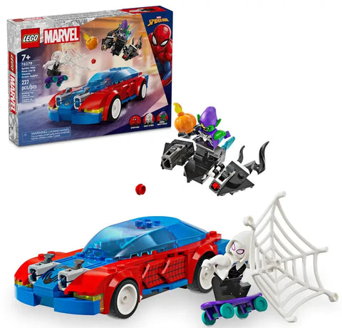 - Spider-Man car for kids – LEGO® Marvel Spider-Man Race Car & Venom Green Goblin is a buildable Super Hero toy that delivers action on wheels and in the air for boys and girls aged 7 and up
