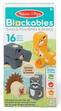- Melissa & Doug Blockables are connectable, stackable, and playable solid wood building blocks, perfect for little hands and big imaginations; special connectors let kids 2 and older easily snap together smooth, colorful blocks to create fun woodland animals to play with, or combine to build their own silly characters and cool creations