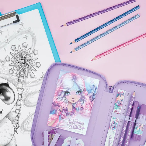 The Nebulous Stars are everywhere to support you, even at school! This collection of deluxe pencil cases with 3 compartments offers a complete stationery set plus an assortment of pencils and markers. All Nebulous Stars branded.