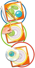 Whether you want to draw only spiral designs or create combinations of different patterns, with the Spiral Designer the creative possibilities are endless. Simply insert a sheet of paper into the drawing frame and you can start designing. Select one of the design discs and guide it around with a sharp-tipped felt pen to create spectacular art. Draw a mini mandala in the middle for a special finishing touch.