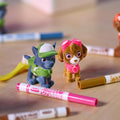 The kit comes with everything you need to start playing right away: three washable felt-tip pens in vibrant colors and a scrub brush. Kids can use the markers to draw unique designs and patterns on their pups. When they're ready for a new look, they can use the brush to give the figures a bath in water, washing the color away so they can start all over again.