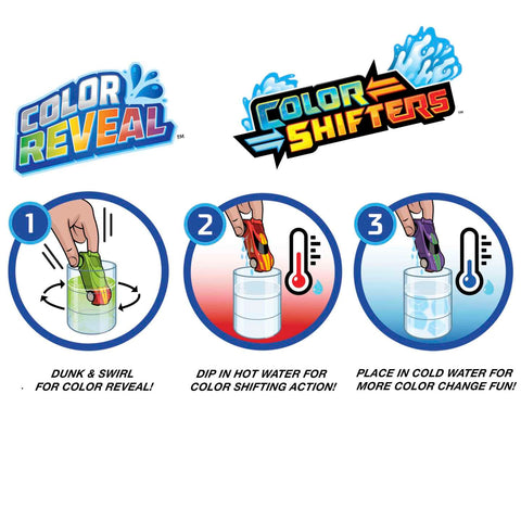 Inside the barrel drum of the Hot Wheels Color Reveal 2-Pack are two 1:64 scale Hot Wheels Color Reveal cars covered in special Color Reveal coating. For the initial reveal, fill the drum with water and swirl each car in it until the water changes color, then pull the car out to reveal its sweet deco. To change its appearance again, fill the drum with icy cold water and dunk it in for yet another awesome transformation! Change it back by dunking it in very warm water! Alternate between very warm or icy cold water to repeat the color shift. The barrel drum serves as a Hot Wheels dunk tank, and it's also perfect for storage! Each two-pack is sold separately, subject to availability. Colors and decorations may vary.