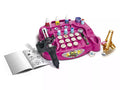 Includes: 1 illustrated storage box, work table, transfer tattoos, stencils, stickers, booklet with tattoo guide, body paints, brushes, rubber cups, water container, body glue, glitter, sponges and rubber supports, stamps, airbrush stamp holder, 4-color pencil, pen holder tool, and illustrated booklet in multiple languages.