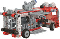 The model includes components and cogwheels for building a fun fire engine, equipped with a steering mechanism and fire-fighting water gun, a modular rescue ladder, fire extinguishers and lots more