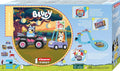 The Carrera FIRST set "Let's Go" for toddlers aged 3 and over ensures that dinner is delivered on time - by Heeler puppy Bluey from the TV series of the same name and her younger sister Bingo, who whizz around the 2.9-metre-long play track at lightning speed. Thanks to decorative elements reminiscent of the show's setting, kids can immerse themselves in the world of the Heeler dog family while playing. Long straights, tricky bends and a fun flip element ensure endless fun. The ergonomic controls, specially developed for children's hands, and the battery-operated track, which is easy to assemble and disassemble, ensure hours of fun and delight little racing fans time and time again.
