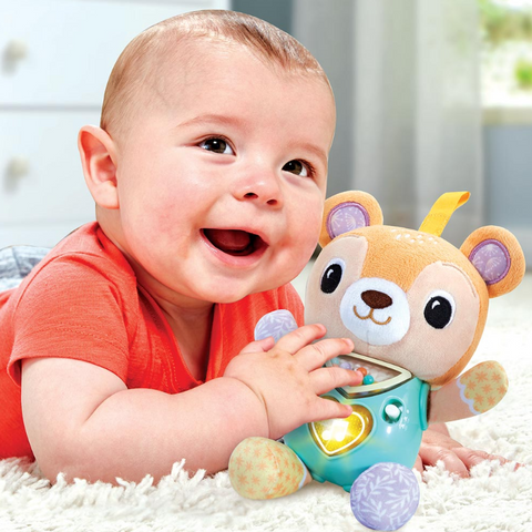 Dès que Bébé appuie sur le cœur lumineux, il déclenche des chansons apaisantes ainsi que des sons et phrases remplies de douceur !