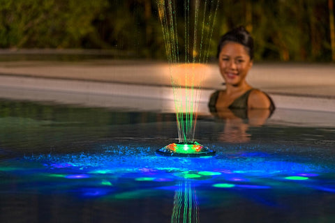 The Flowclear™ LED Floating Pool Fountain lets you bring home the awe of a water show for your own personal entertainment. Unlike the extravagant fountains of Las Vegas or Dubai, this fountain requires little setup. But still packs an entertaining punch. The fountain propels water more than 3 ft. (~1 m) into the air and features two spray options with three different light modes. Use the pulse setting and the water stream will alternate heights - low and high. Or switch to the high beam setting for a constant spray at maximum height! The red, green and blue built-in LED lights put on a show of their own. Alternate the lights with three different settings: slow flash, quick flash or random. All operations are done with a one-touch, easy-to-use control panel. The show must go on. And with the built-in lithium battery, it does. Keep the fountain and light show going for 2-3 hours on a full charge. This fountain is engineered for prolonged water use with a IP67 waterproof rating. But don’t worry about wasted battery power, an automatic shut-off switch triggers after one hour of inactivity.