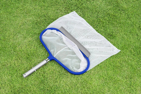 The Flowclear™ AquaRake™ Deluxe Aluminum Pool Leaf Skimmer is built to keep pools clean with ease. The net collects debris, leaves and dirt that collect on the surface and bottom of the pool. The large size is great for capturing larger debris items most efficiently - no need to empty the bag over and over before you’re finished cleaning. Along the front is a scoop that helps collect more particles into the net. This helps you keep your pool sparkling clean with minimal effort. The AquaRake Deluxe frame and handle are constructed with a high-strength aluminum, attached to durable mesh netting, providing a dependable debris-collecting cleaning tool to use season after season. Attach any pole with an inner diameter of 1.2 in./3 cm (not included) to customize the skimmer to your pool’s specific size. Convenient, functional and long-lasting, the Flowclear AquaRake Deluxe Aluminum Pool Leaf Skimmer is a great choice that will keep your pool in pristine condition for many summers to come.