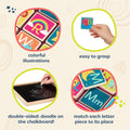 - Double-Sided: Flip the puzzle board over to draw or write on a handy chalkboard!