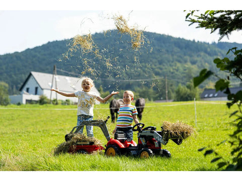 Pedal tractor Farm Lander red with loader, excavator and siding, from the French manufacturer FALK. Realistic copies of well-known tractor brands made of high-quality durable plastic with regard to the safety of children. Suitable for children from 2 to 5 years.