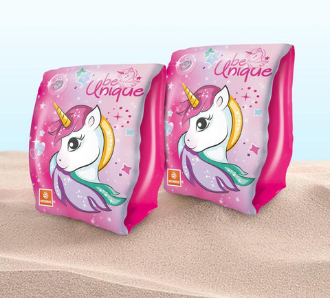 The Unicorn inspired armbands for kids are made of durable PVC material, offering safety, softness and elasticity for a safe and comfortable swimming experience.