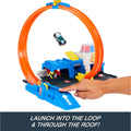 • Choose the second lane to race through the loop then straight off to other adventures. Connect more Hot Wheels track to the base to expand the storytelling possibilities. (Additional track sold separately.)