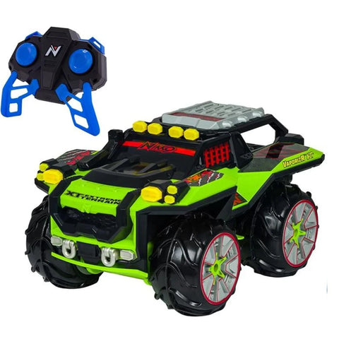 The new Nikko VaporizR XT is a true go anywhere RC. Dirt, Mud, Snow, and Water, the VaporizR XT’s real 4 wheel drive power and amphibious ability conquers every terrain, even letting you drive on water! Now with its built in USB recharging cable and the power of its Lithium Polymer quick charge battery, you’ll be charged up and ready to run in no time! The VaporizR XT comes with everything you need to race.