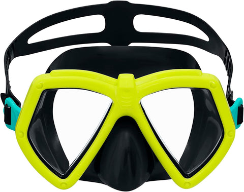 The Dominator Mask features a flexible, leak-resistant edge skirt that will comfortably secure to your child's face, without allowing any water to seep in while they swim. The fully adjustable head strap can be tightened or loosened for the perfect fit. This mask is also constructed with non-latex based materials for extra safety.