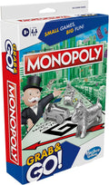 • PORTABLE VERSION OF MONOPOLY GAME: Same classic gameplay in a compact format! The Monopoly Grab and Go game for ages 8 and up is a mini, portable version of the Monopoly board game for fun on the run