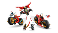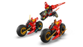 Kids aged 8 plus enact scenes from season 3 of the NINJAGO® Dragons Rising TV show with the Ninja Combat Vehicle 3-in-1 action toy (71844). Kids can play with a large ninja bike action toy before separating it into 3 smaller vehicles: Kai’s bike, Wyldfyre’s bike and Frak’s aircraft jet toy with 2 stud shooters.