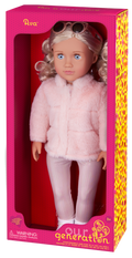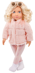 Explore fun styles and awe-inspiring looks with Ava! This Our Generation 18-inch doll has a huggable soft body and lifelike features to delight doll fans during playtime. Her light-blue eyes open and close, and her wavy, light-blonde hair is fun to style in many ways! Ava always sets her sights on trendy fashion. She arrives wearing a faux-fur coat in a lovely pink shade, matching leggings, and cute booties. She even lets her playful side shine with a pair of cat-ear sunglasses! When it's time for dress-up, her outfit has easy-open closures to quickly put on and remove. So you can mix, match, and create more stylish looks on any adventure! Our Generation dolls make a great gift for kids ages 3+ (small parts), encouraging them to imagine their own unique stories.