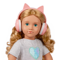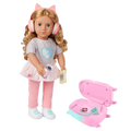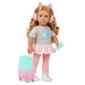 Create endless adventures with Our Generation 18-inch doll Linzi! This adorable travel set lets little explorers play out hours of stories with themed accessories, including a cute cat-ear luggage they can pack and unpack. Plus, it features rolling wheels and an extendable handle for realistic role-play and easy traveling! Linzi is ready to set off in style with a reversible sequin top that kids can flip up and down. She has a huggable soft body and lifelike details to delight doll fans during playtime. Her dark-blue eyes open and close, and her wavy light-blonde hair is fun to style in many ways. For kids who love dress-up, her outfit has easy-open closures to quickly put on and remove. So they can mix, match, and create even more cute looks! Our Generation dolls make a great gift for kids ages 3+ (small parts), encouraging them to imagine their own unique stories.