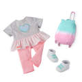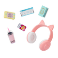 • Includes: 18-inch doll, a flip-sequin top, pink pants, a pair of undies, shoes, a luggage and headphones with cute cat-ears, a passport, boarding pass, pretend video game console, travel drink, and a pack of gum.