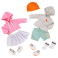 - Includes: 2 dolls, 2 hooded sweaters, shorts, a skirt, a beanie hat, 2 pairs of undies, socks, and 2 pairs of shoes.