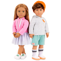 Double up on friendship and fun with best friends Lizzie & Oliver - 2 Our Generation dolls! These 18-inch dolls are ready for adventures together in cute hooded sweaters, shorts, a skirt, and a beanie hat for an extra colorful pop. Lizzie and Oliver have soft, huggable bodies and lifelike features that will delight doll fans during playtime. Oliver's wavy dark-brown hair and Lizzie's dark-blonde locks are fun to style, and they have expressive hazel/dark-brown eyes that open and close! When it's time for dress-up, their outfits have easy-open closures to quickly put on and remove. So kids can mix, match, and create more stylish looks as they explore imagination and self-expression. Our Generation dolls make a great gift for kids ages 3+ (small parts), encouraging them to create their own unique stories.