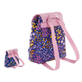 Twin with your favorite 18-inch dolls in fresh, colorful style with the Our Generation Me & You Floral Backpacks! These backpacks come in sizes for both kids and 18-inch dolls for cute matching looks. Featuring fun floral patterns with bright colors and pink straps, each backpack opens to carry school books, fun items, or accessories with the easy-to-fasten drawstrings. And the foldable flaps keep items secure during traveling adventures!