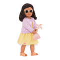 The sun is shining, and your dolls are ready for beautiful summer adventures in the Our Generation Sunshine and Stars outfit for 18-inch dolls! Dress your dolls in the sunny yellow sundress with a tulle layer for a little bit of fancy style. Comfortable and chic sandals and a transparent pink purse give this look effortless fashion. When the sun goes behind a cloud, the pale purple cardigan sprinkled with a shiny star print will keep them cozy. Stay cool in the bright sun with the ultra-fashionable cat-eye sunglasses, and use the pinwheel spinner to catch the summer breeze! (Dolls sold separately)