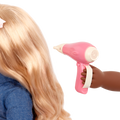 Set new trends and create fabulous hair days with the Our Generation Sweet Styles salon chair for 18-inch dolls! Designed in pretty pink and gold colors, this doll salon chair has a cushioned seat and really adjusts to give your doll an exciting new makeover. Need the seat to go higher? Use the foot pedal to raise it to the perfect height. Then push the button to lower the seat to its original position, just like a real salon chair! Plus, it comes with bonus accessories like a metal bristle brush, 6 hair elastics, and a hair dryer that makes a fun sound to give each look a professional stylist touch! Our Generation doll accessories make a great gift for kids ages 3+ (small parts), encouraging them to imagine their own unique stories. Compatible with most 18-inch dolls and accessories. Dolls sold separately.