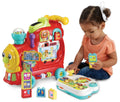 • Block play: insert into port to hear about letters and objects; drop down the counting chute; build on cart; tumble down the pegged seat panel