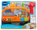 It's time to get to work with the Drill & Learn Toolbox by VTech! This toolbox with carry handle is full of electronic learning fun for your little fixer! With 3 light up tool buttons that introduce tools, colours and numbers, there's always something new to learn! Use the interactive drill to tighten and loosen screws, as well as spin the gears on the front of the toolbox! 16 accessories include the drill, screwdriver, spanner, hammer, 3 screws, 3 nails and 6 play pieces. 3 game modes feature Learning, Challenge and Music modes! Project guide included with 5 starter projects.