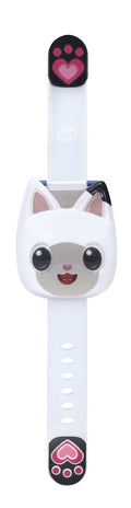 It’s a Pandy Paws hug attach for your wrist! Cute wristwatch featuring Pandy Paws includes ten themed digital clock faces, time tools and four games. Pandy Paws will guide you through games that include characters from the hit show Gabby’s Dollhouse. Help Gabby, Pandy Paws and Kitty Fairy collect the shape popcorn for snack time and match the foods to make milkshakes with Cakey Cat. Avoid obstacles and pick the right numbers to get MerCat’s tub back to the bathroom. Identify different shapes while doing shape crafting with Crafty Cat. Time tools include a stopwatch, timer and alarm clock. Meowzers!