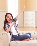 Fonction Magic Voice : Branche ton lecteur mp3 (non inclus) et en une pression sur le bouton «Magic Voice»*, transforme tes chansons préférées en version karaoké comme par magie !