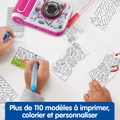 Plusieurs formats d'impression : photos classiques, panoramas, coloriages, cartes, étiquettes, BD. Cet appareil photo utilise le système d'impression thermique (impression en noir et blanc, sans encre).