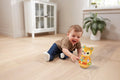 - Bright colours and a light up ring provide visual stimulation.
