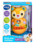 Let’s have some wobbly fun with the Rock and Roll Bear by VTech®. As bear wobbles back and forth, the motion sensor is triggered so baby can hear fun sounds, which encourage little one to interact with Bear. Press the heart, bee or honey pot buttons to hear fun phrases, sing-along songs, melodies and sounds. Bear’s soft textured ears provide tactile stimulation. Pushing Bear supports gross motor movement. Bright colours and a light up ring provide visual stimulation and adds to the fun. Features 3 fun sing-along songs and 12 upbeat melodies.