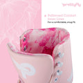 FASHIONABLE AND STYLISH DESIGN - Fitted with a glitter lace-up fastening, the boots come along with a soft cushioned inside lining for a snug yet comfortable fit with a delightful all-over floral print. These retro-inspired women's quad skates feature a perfect pastel finish with glittered wheels and laces.