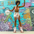 Hit your groove on the disco ring with a delightful pair of roller skates from Prettyfly in a fantastic range of pastel colors and retro-vibes. Fitted with a glitter lace-up fastening, the boots come with a comfortable cushioned inside lining with an all-over floral print. The chassis is made in aluminium and comes with a bolt-on toe-stop for added protection. They also come with durable PU glitter wheels and ABEC-5 bearings to give you the smoothest rolling experience in the most 90s style! Vegan product. Adult female skates in Blue.
